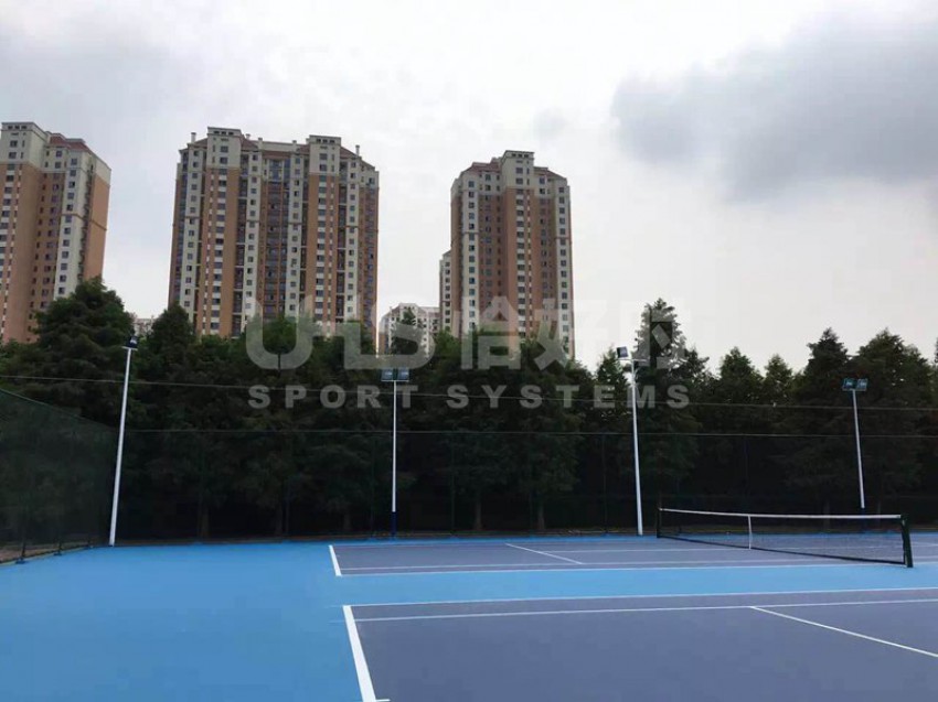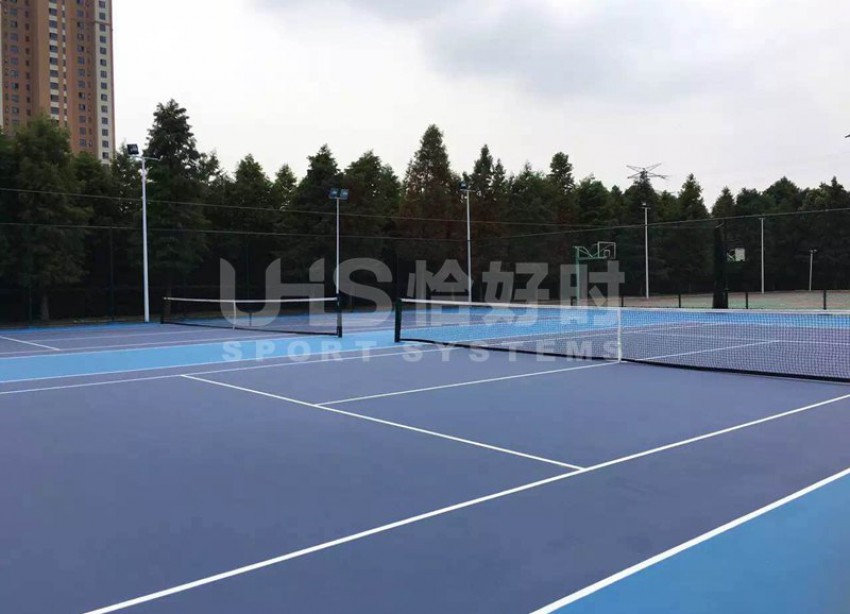 蘇州工業職業技術學院是2003年由江蘇省人民政府批準成立的公辦普通高校,是江蘇省示范性高職院校。其前身可追溯到成立于1946年9月的“江蘇省立蘇州高級工業職業學校”,是蘇州最早建立的工科類職業技術學校。項目位于學校校園運動場內的兩片室外網球場,地面材料采用恰好時旗下著名丙烯酸品牌托柏斯涂料,顏色為深藍+淺藍的澳網場地搭配。
